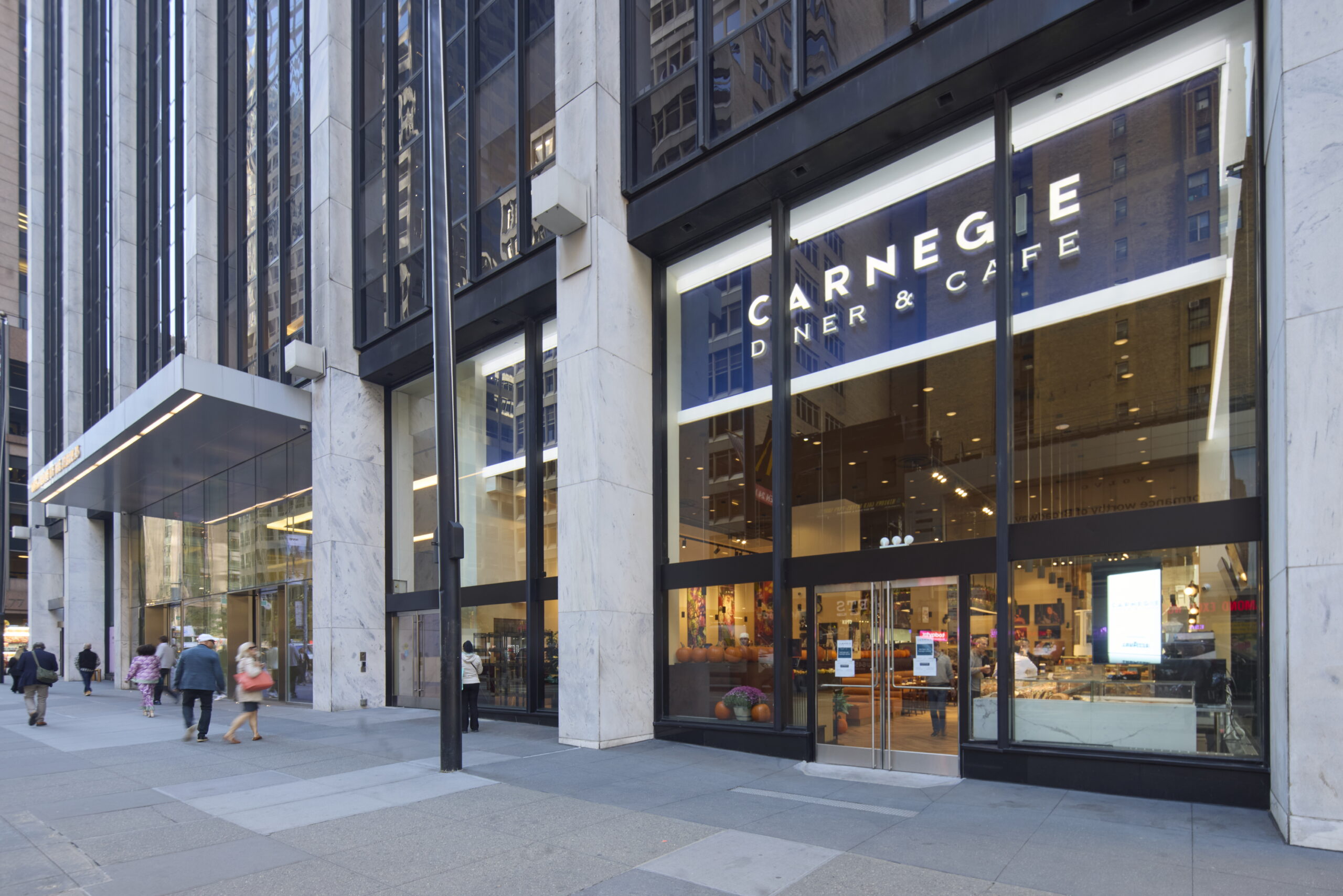1185 Avenue of the Americas, at the southern tip of Corporate Row between 46th and 47th Streets, is within walking distance to both Bryant Park and Times Square. The 1,100,356-square-foot building which opened in 1971 is finished with a newly renovated entryway, lobby, elevator cabs, corridor and bathrooms featuring a dramatic marble-clad exterior with a beautiful outdoor plaza. With its proximity to Grand Central Terminal, Penn Station, and the Port Authority Bus Terminal, the building has access to 15 subways, numerous buses, and trains, and is also connected to the subways and multiple retail levels at Rockefeller Center by an underground concourse. The building is home to a world-class tenant roster, which includes the Hess Corporation, National Hockey League, and King & Spalding. The building has also received the LEED Certified Silver.
